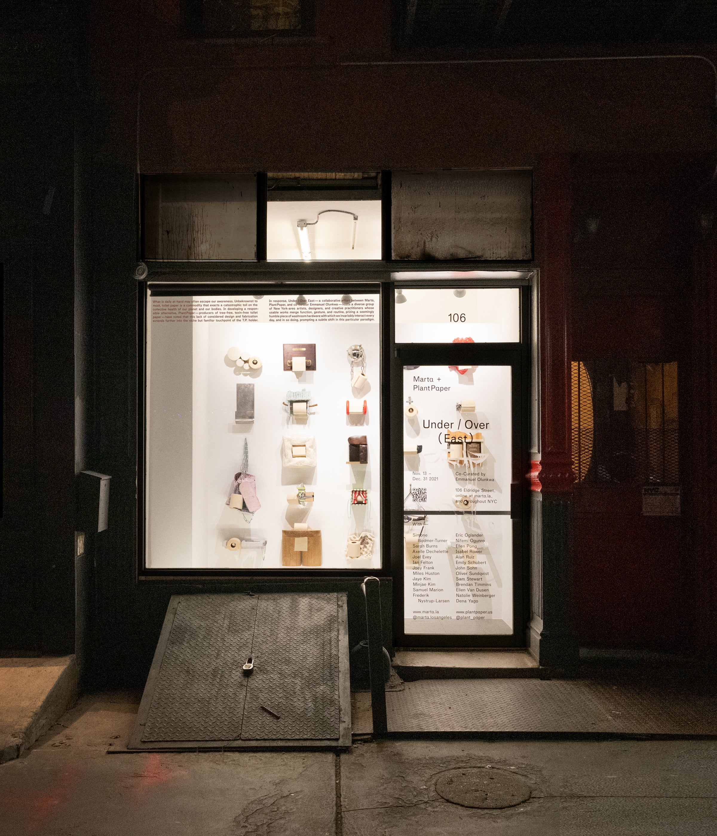화장지 베개는 2021년 11월 13일부터 12월 31일까지 뉴욕시 여러 장소에서 개최된 화장지 홀더 그룹 전시회인 Under/Over(East)에 전시되었습니다. 마르타 그리고 플랜트페이퍼 .