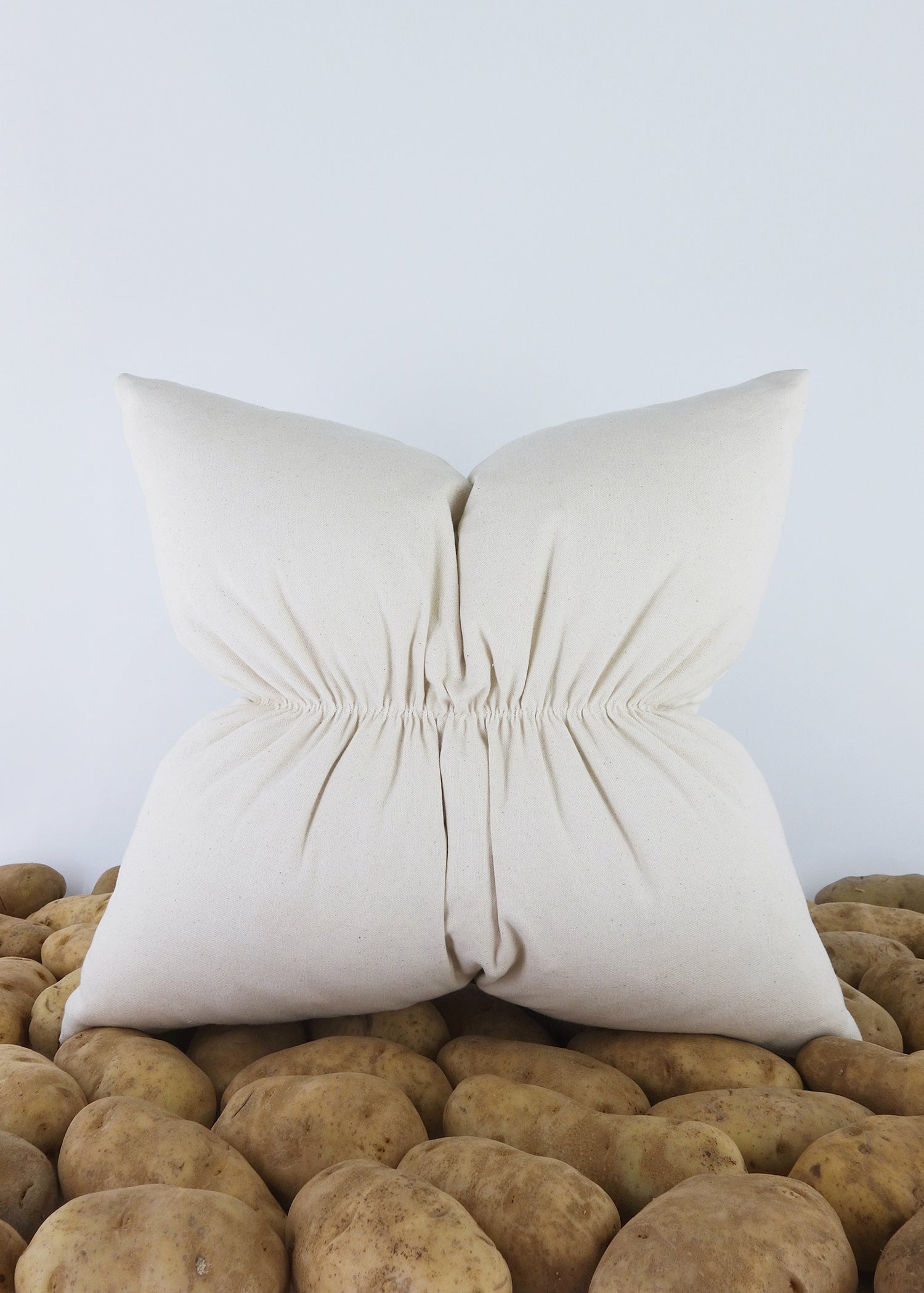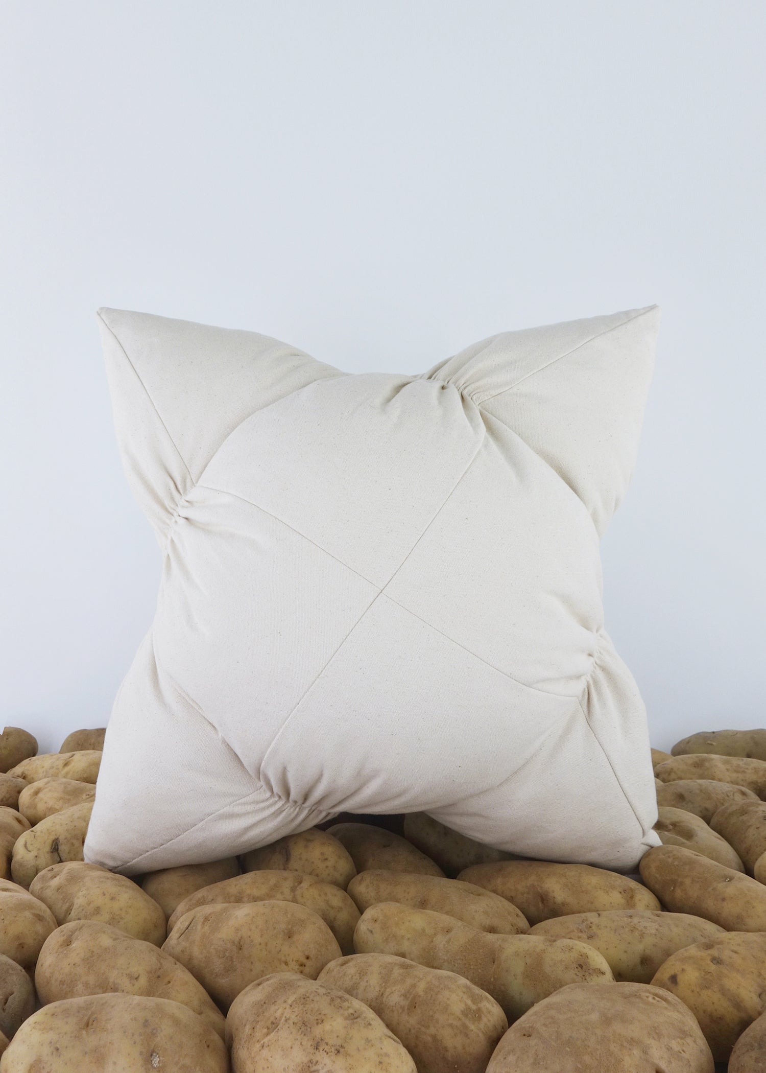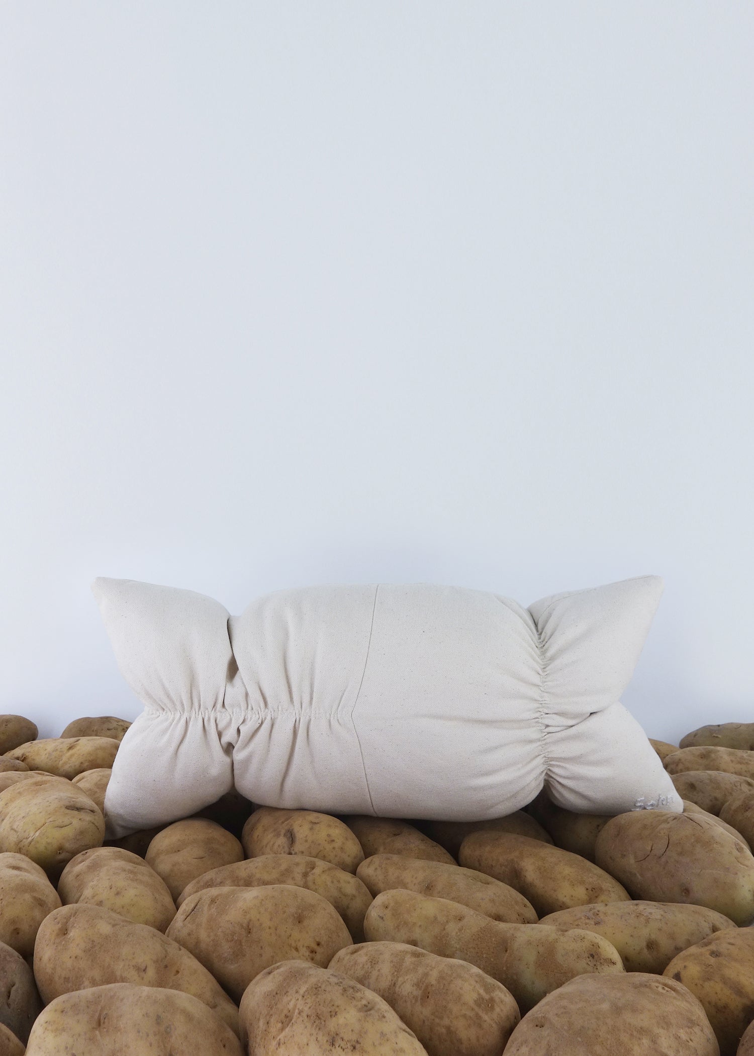Ruching은 친숙한 사각형 베개를 좀 더 감각적이고 거슬리는 것으로 조작하는 데 사용됩니다. 다양한 방식으로 탐구된 이 시리즈는 주름진 사각형의 반복을 활용하여 베개 볼륨 전체에 균형 잡힌 긴장감을 조성합니다. 루칭은 여성 기성복에서 볼륨을 조절하기 위해 자주 사용됩니다. 즉, 옷이 몸에 더 가깝거나 몸에서 멀어지도록 돕습니다. 인테리어에서 러칭은 커튼, 테이블 스커트, 의자 등 화려한 장식과 더 많이 연관되어 있습니다. 이 시리즈는 그러한 의미를 지우는 것을 목표로 합니다. 주름진 스티치로 인해 충전재가 베개의 어색한 주머니를 차지하게 되며, 강화된 스티치의 강도와 직물의 짜임새를 모두 활용하여 모든 것을 제자리에 고정합니다. 그렇지 않으면 베개는 이 긴장으로 인해 무너질 수 있습니다. 그러나 통제된 혼돈의 상태는 매력을 만들어냅니다. 그들은 약간 당황스러우면서도 부드러운 형태를 만들기 위해 끊임없이 긴장감을 유지하고 있다.